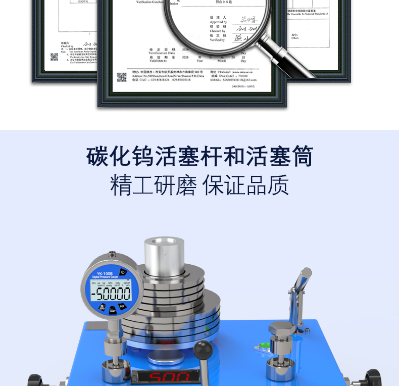 滿足JJG59-2022《液體活塞式壓力計檢定規程》 ,JJG 99-2022《砝碼》