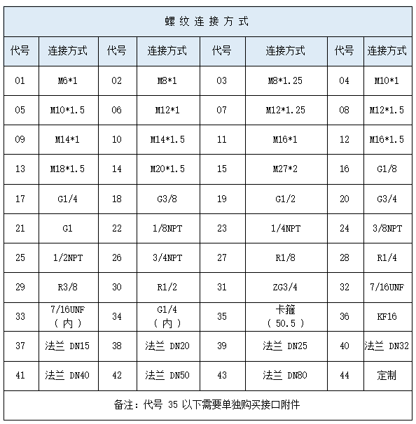 壓力(lì)連接:M20 × 1.5mm
